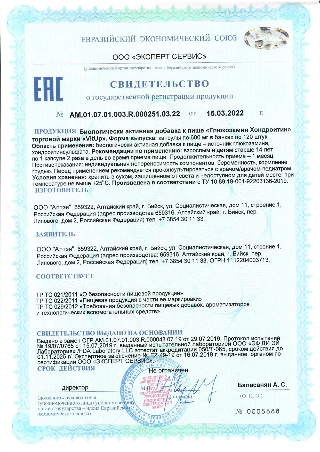 Снижает риск развития остеоартроза Способствует: • Улучшению подвижности и гибкости суставов; • Обновлению хрящевой ткани суставов и позвоночника; • Стимулированию выработки коллагена; • Облегчению состояния при болях в суставах и позвоночнике. Сейчас происходит смена флакона. При заказе могут отправить как в новом дизайне, так и в старом. На качество и свойства продукта это не влияет.