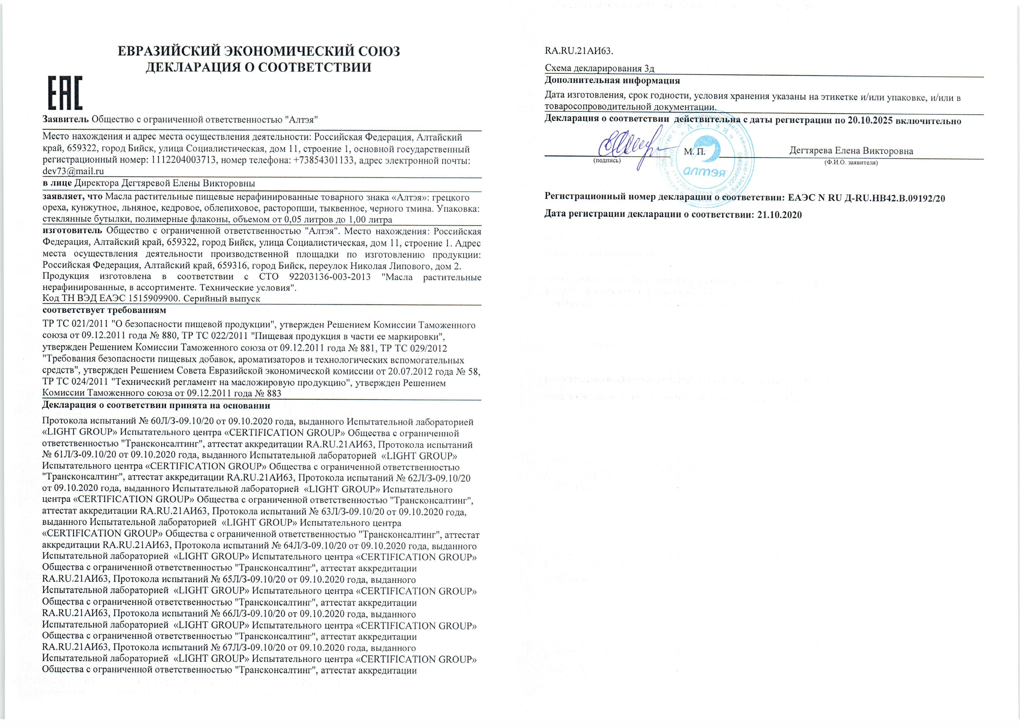 Масло облепиховое Алтэя