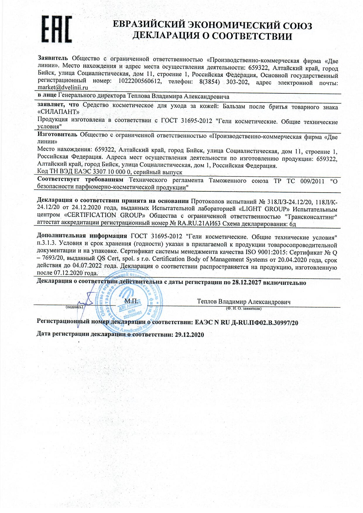 Бальзам после бритья СИЛАПАНТ