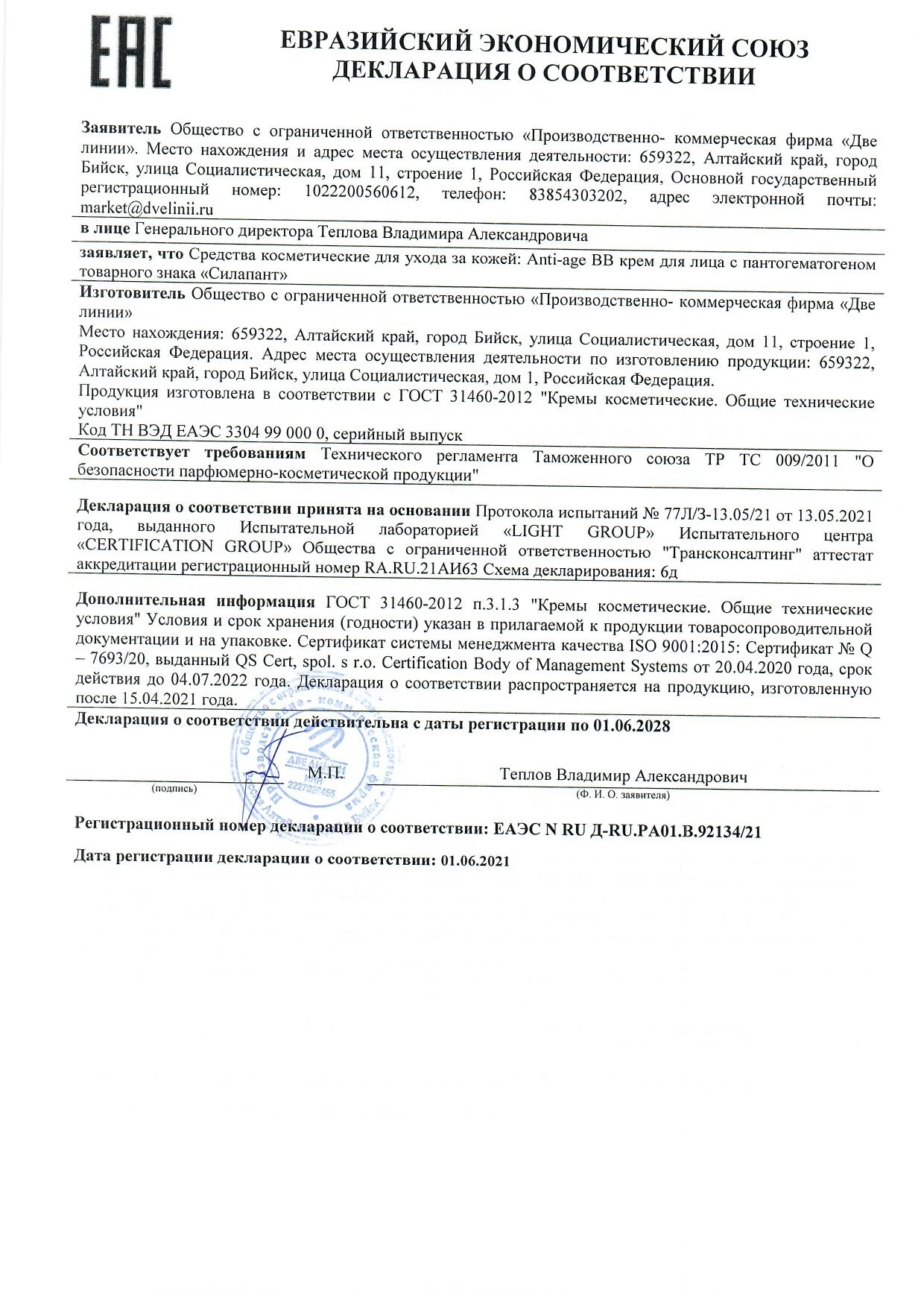 Anti-age ВВ Крем для лица СИЛАПАНТ