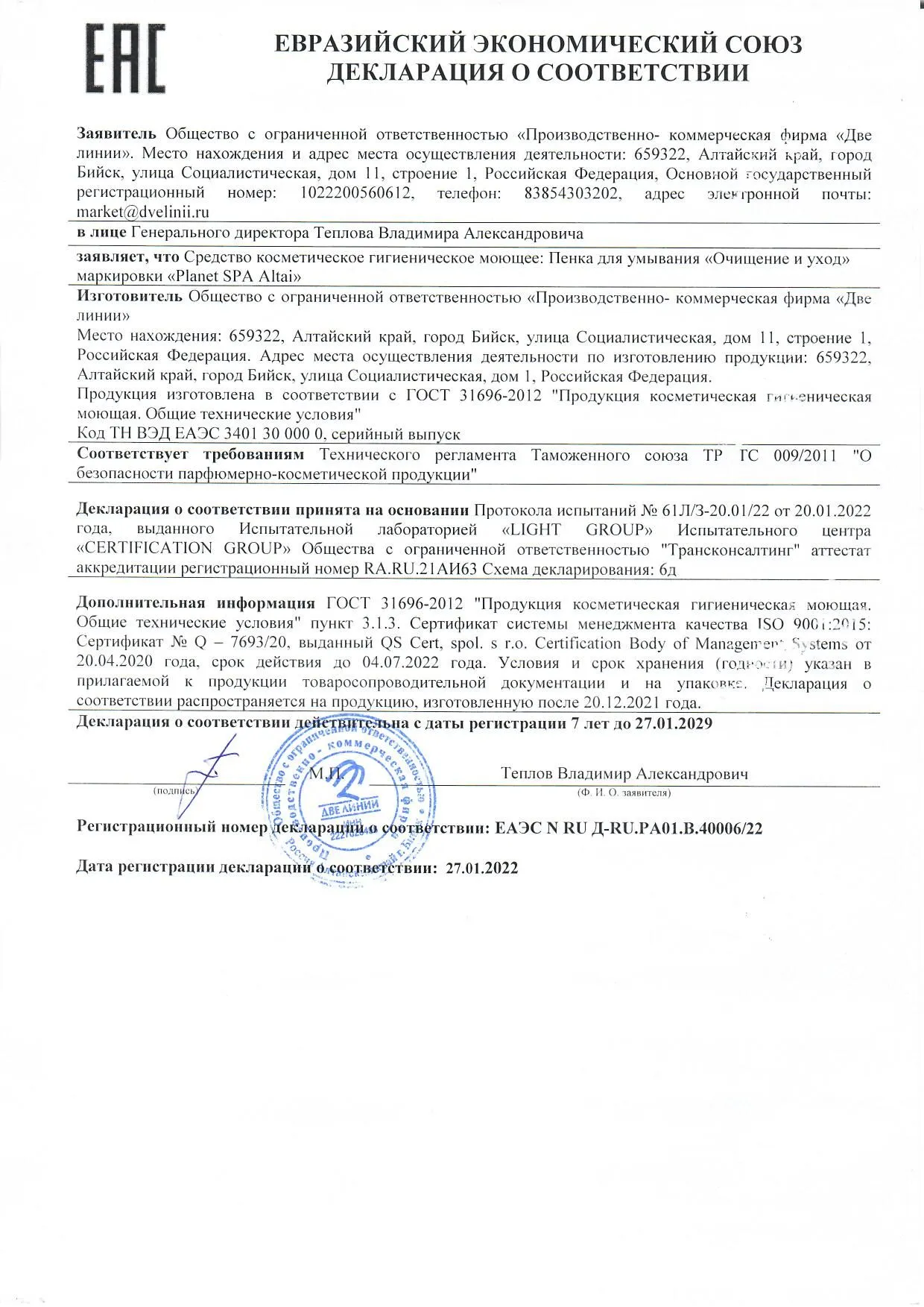 Пенка разработана для ежедневного утреннего и вечернего ухода за кожей лица и шеи любого типа.