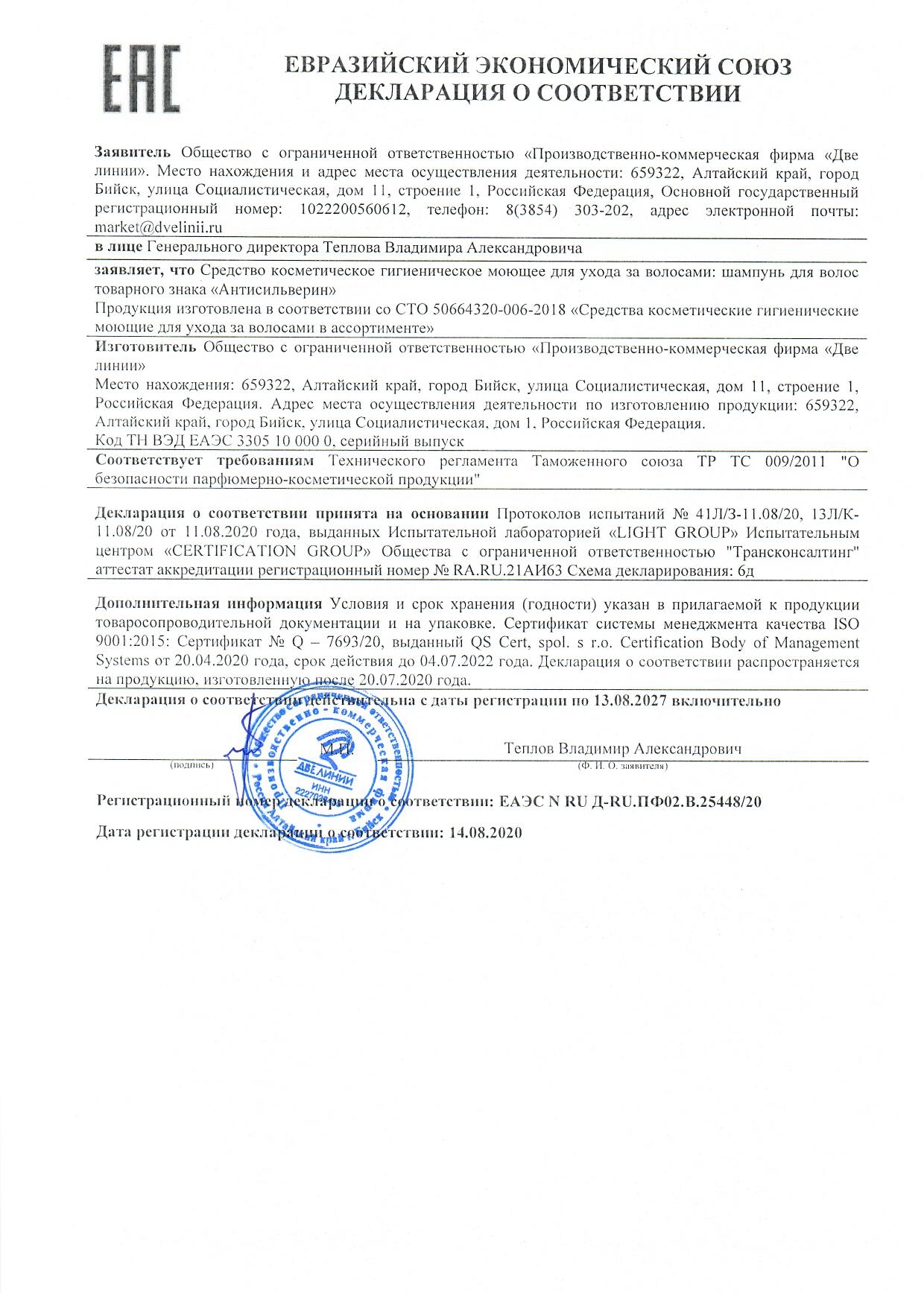 Шампунь Антисильверин