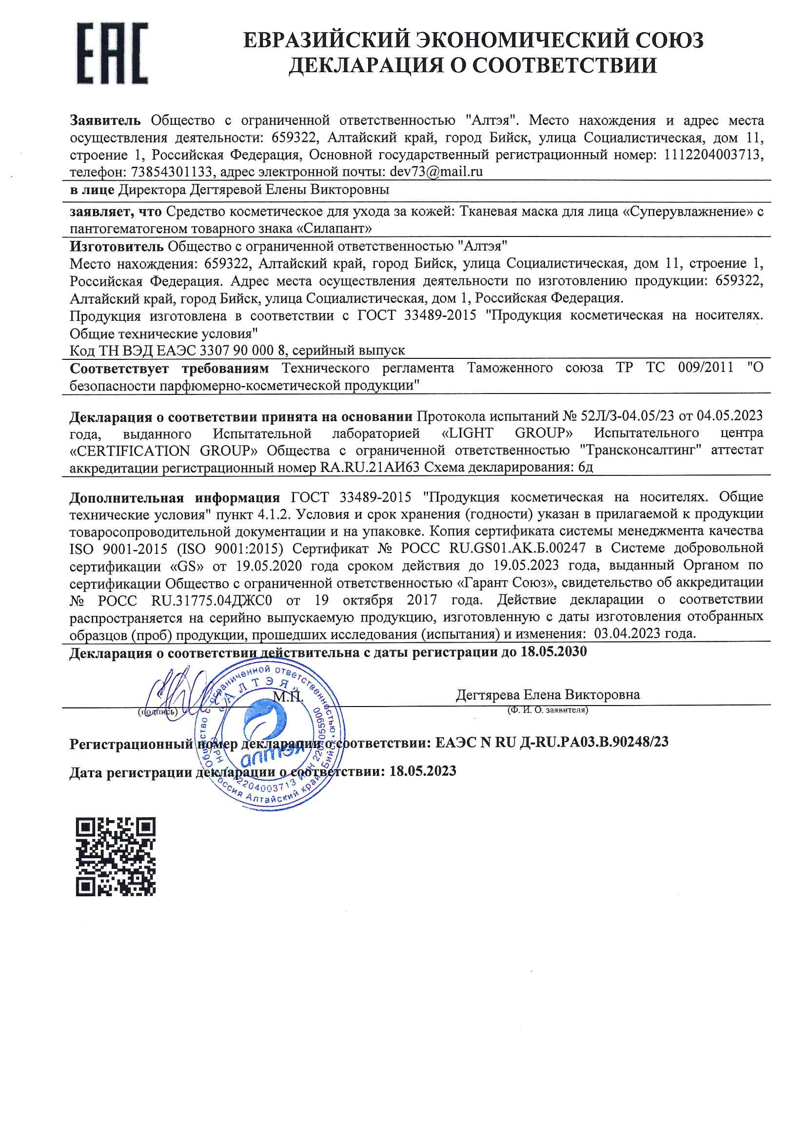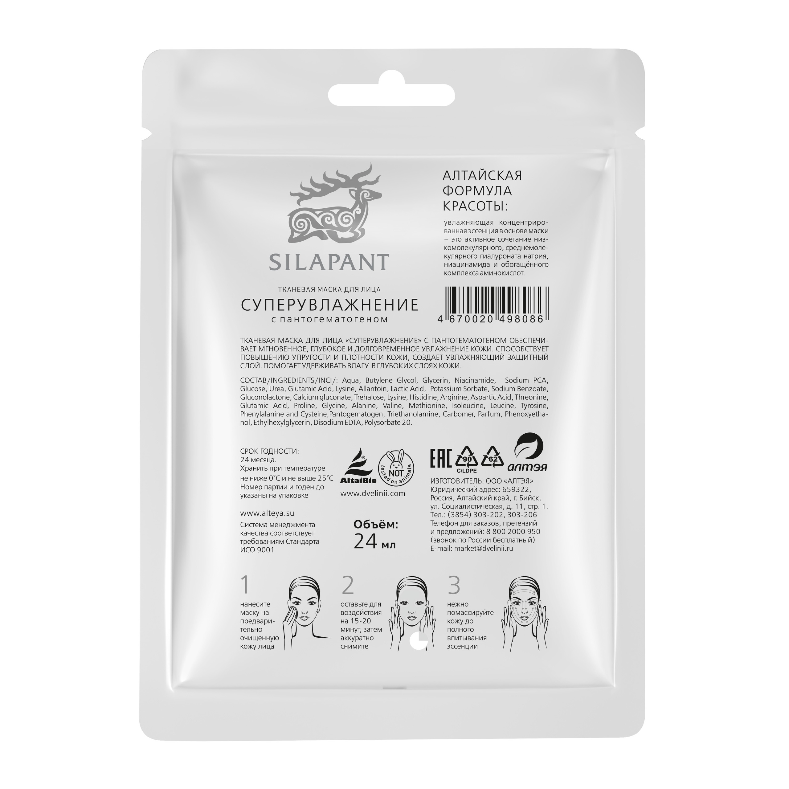 Тканевая маска для лица СИЛАПАНТ «Суперувлажнение» с пантогематогеном