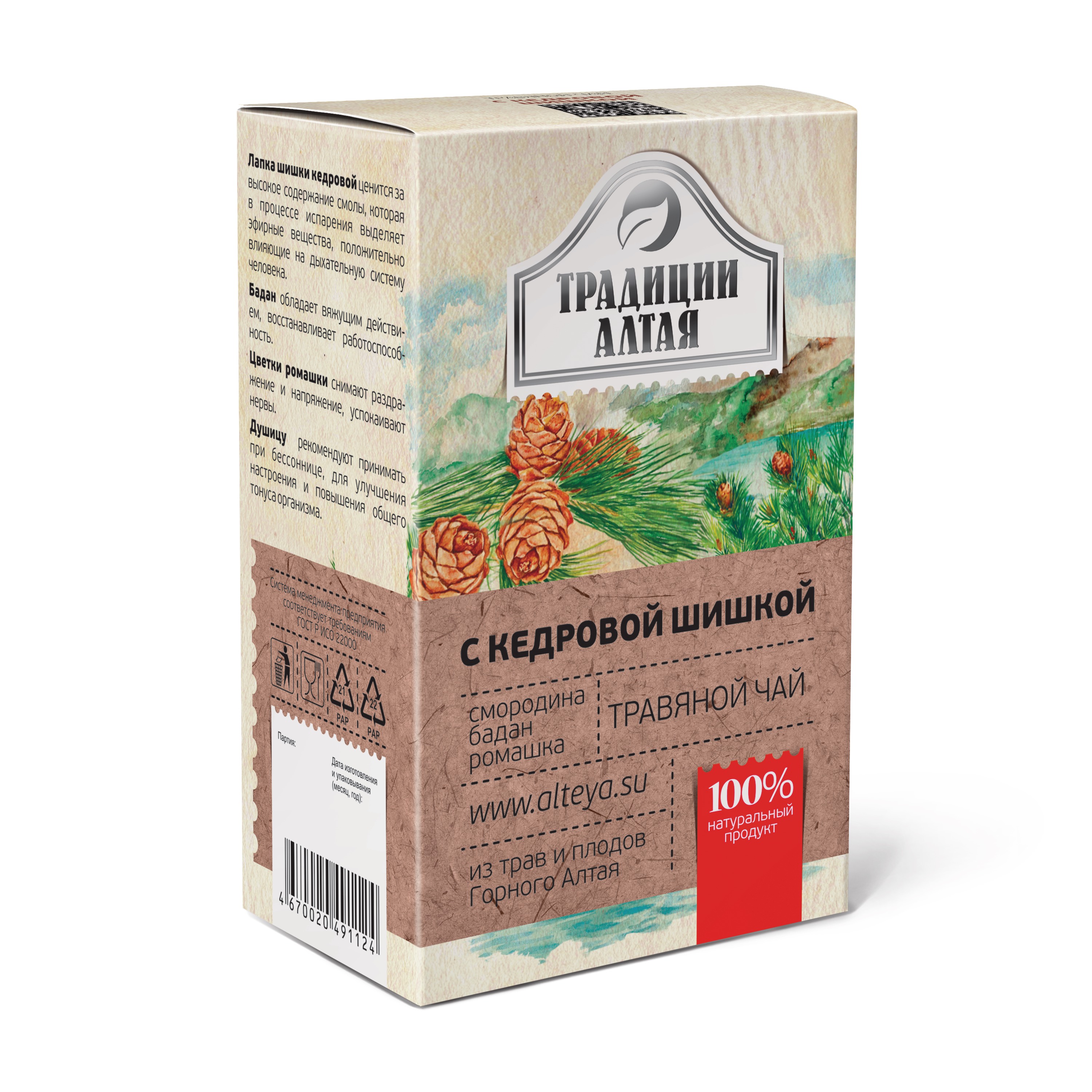 Чайный напиток травяной чай с кедровой шишкой
