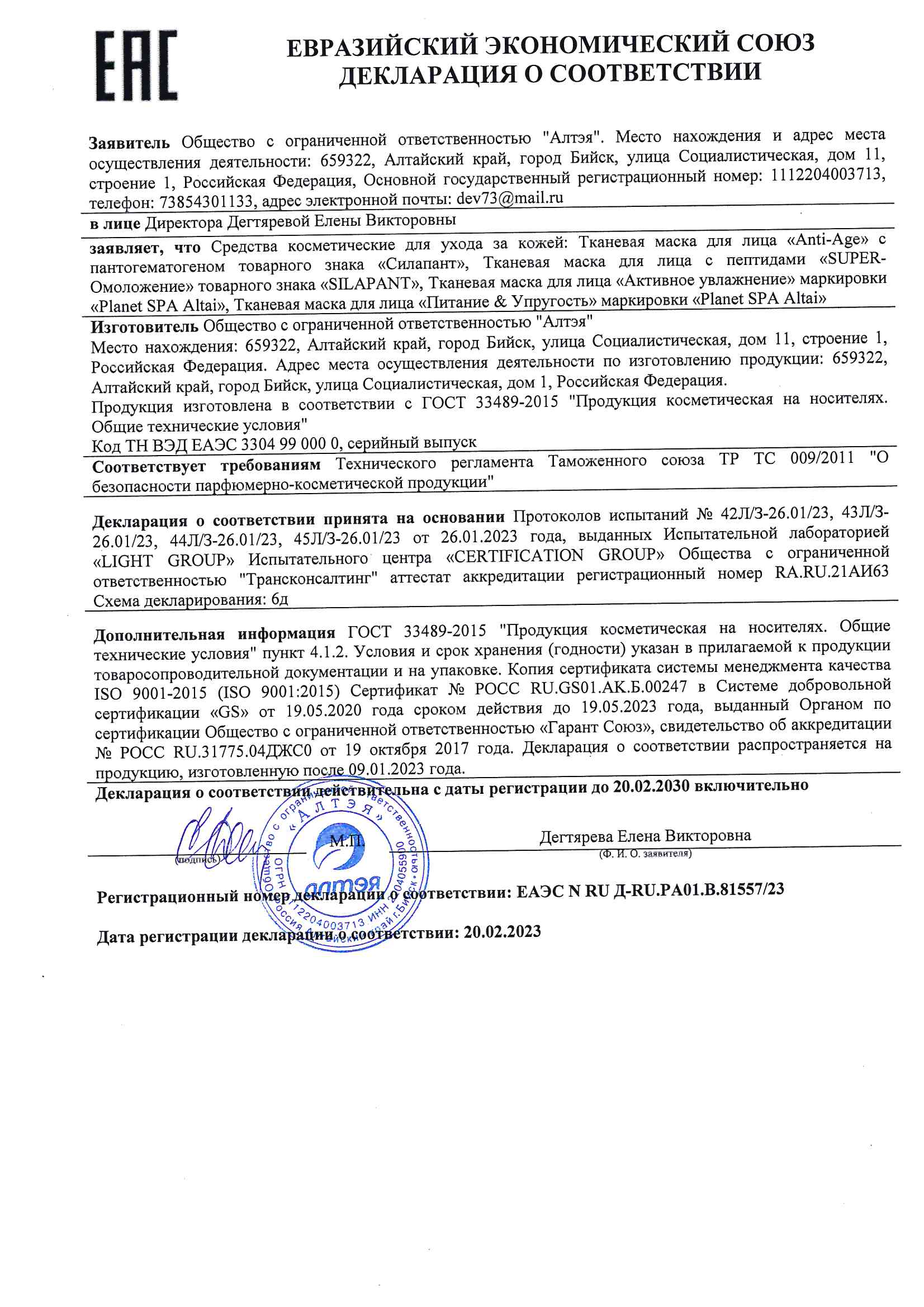 АЛТАЙСКАЯ ФОРМУЛА МОЛОДОСТИ: сочетание коллагена, эластина, гиалуроновой кислоты с алтайским пантогематогеном и натуральными экстрактами оказывает мощное anti-age воздействие, обеспечивая стойкий косметический эффект.