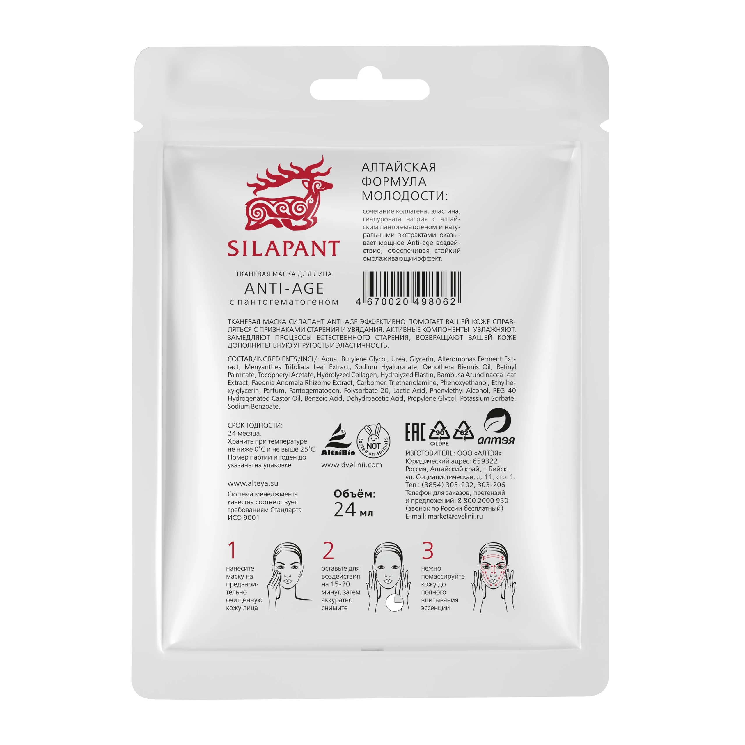 Тканевая маска для лица «СИЛАПАНТ» Anti-аge с пантогематогеном