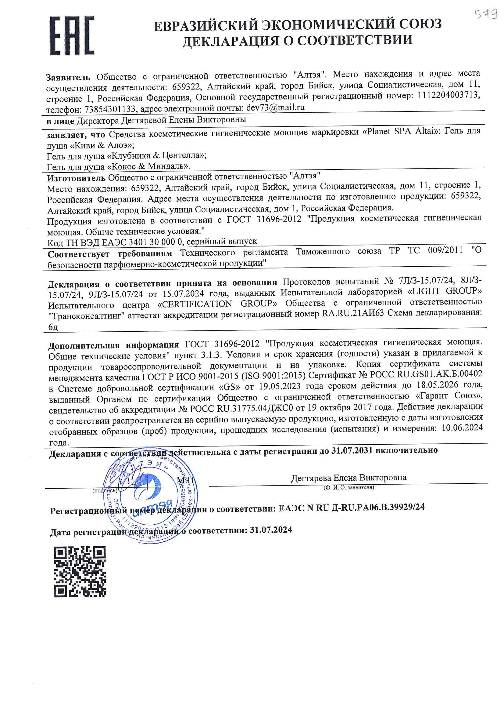 PLANET SPA ALTAI ГЕЛЬ ДЛЯ ДУША «КЛУБНИКА & ЦЕНТЕЛЛА»