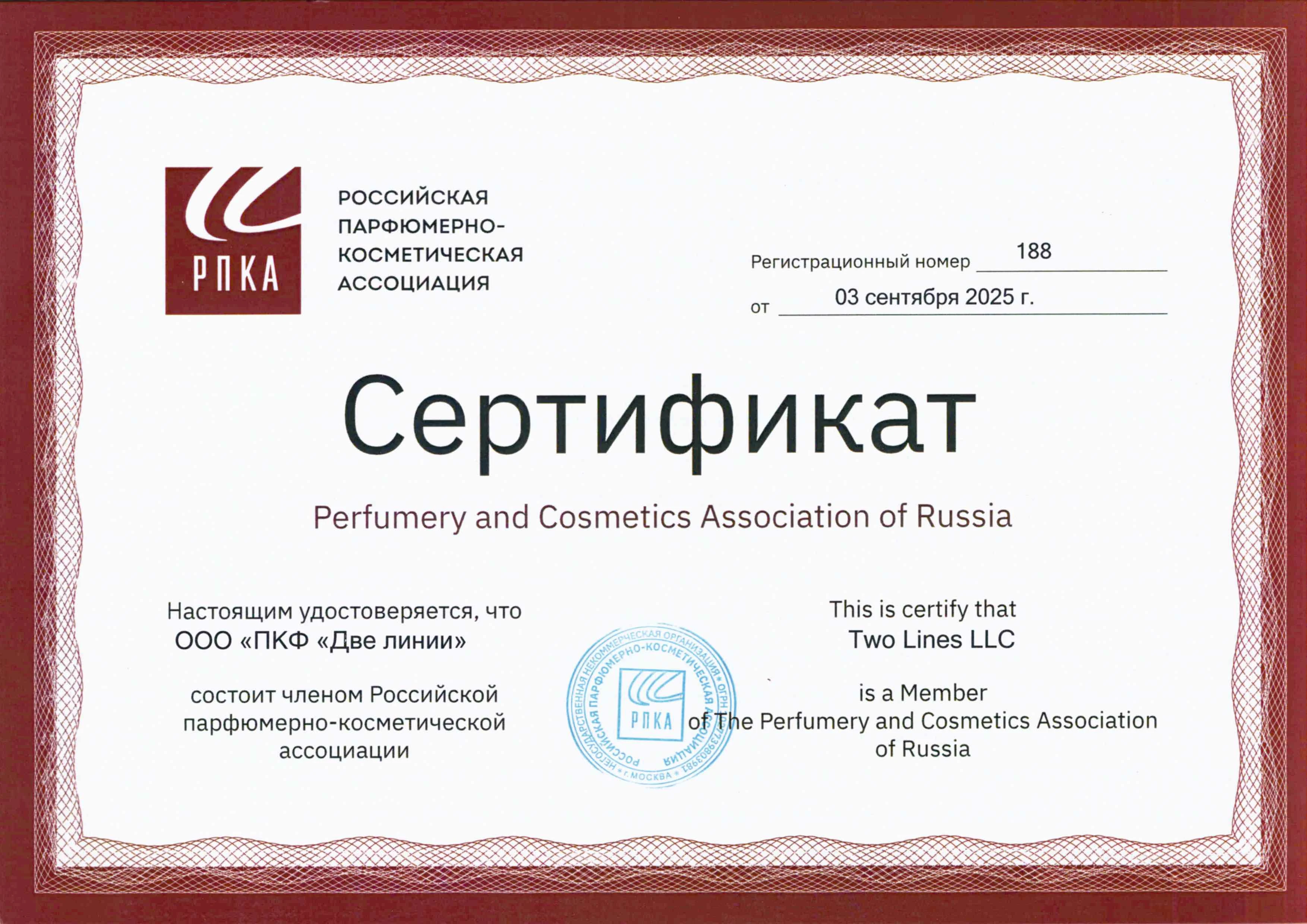 Начало октября для нашей компании ознаменовался выходом на новый уровень. Компания «Две линии» стала членом Российской Парфюмерно-Косметической Ассоциации (РПКА). Мы верим, что этот стратегический шаг укрепит наши позиции на федеральном рынке и откроет уникальные возможности для роста.