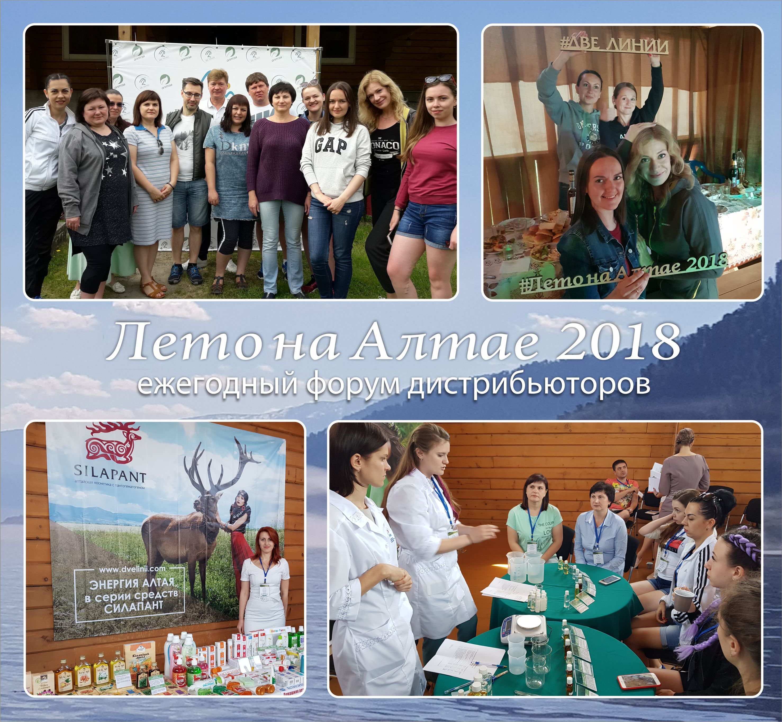Ежегодный форум дистрибьюторов Компании «Две линии» состоялся в июне 2018 года. Мероприятие посетили 27 представителей компаний со всех регионов России и даже Азербайджана. Встреча проходила в уникальном по красоте месте, на территории Телецкого озера, где каждый мог почувствовать энергию и силу природы Алтая.