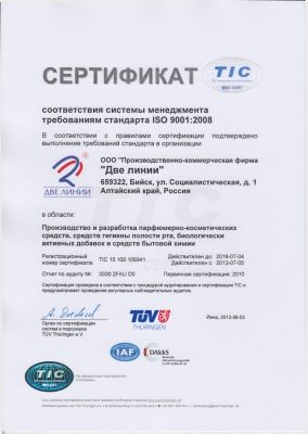 В мае 2013 алтайская косметическая компания Две линии подтвердила соответствие системы менеджмента качества требованиям стандарта ISO 9001-2008.
