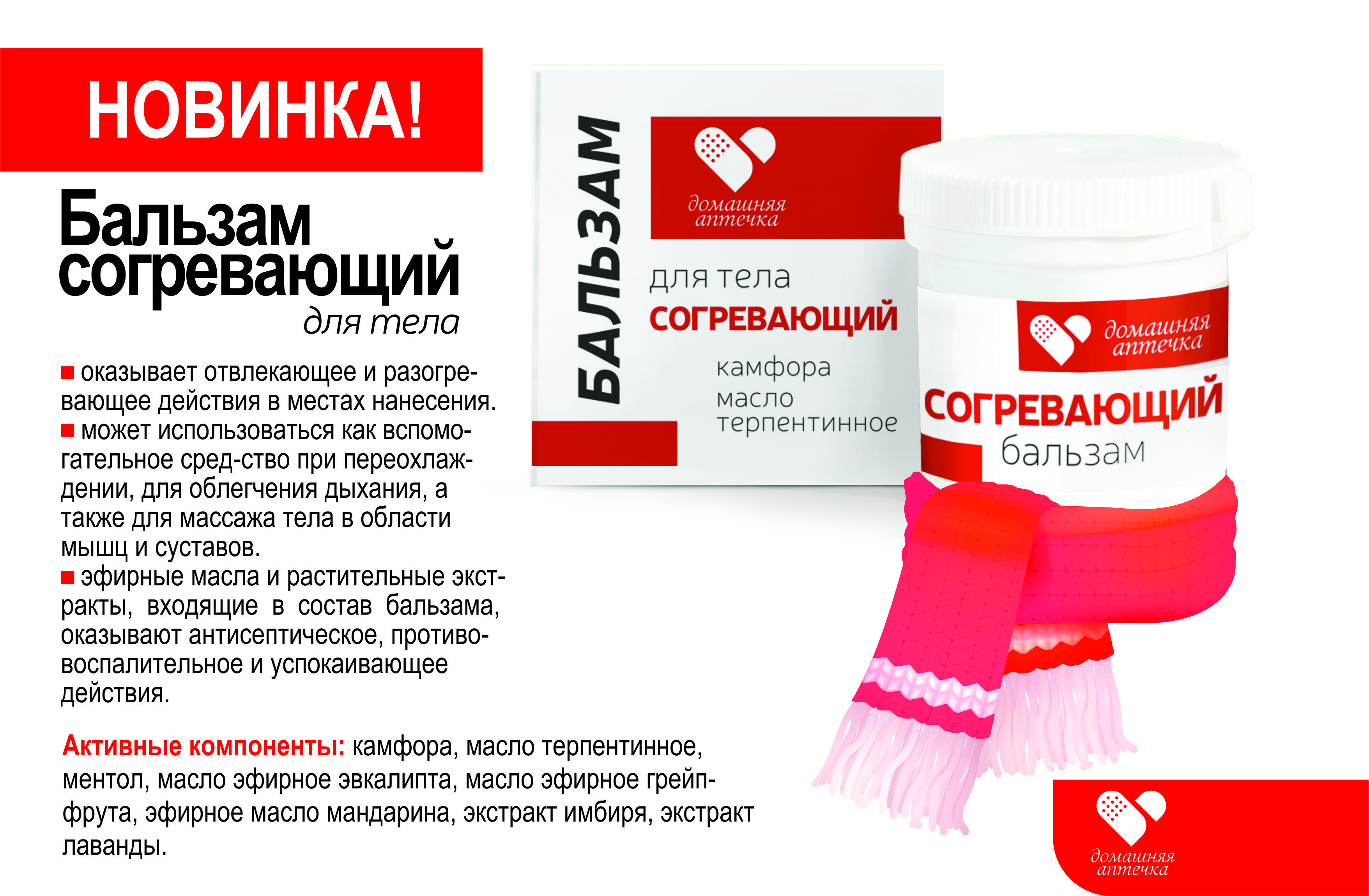 Бальзам обладает отвлекающим и разогревающим действиями в местах нанесения. Эфирные масла и растительные экстракты, входящие в состав бальзама оказывают антисептическое, противовоспалительное и успокаивающее действие.