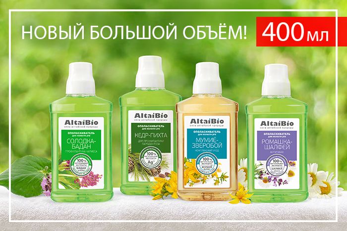 Теперь вы можете приобрести ополаскиватели для полости рта Altaibio в более удобном объёме 400 мл.